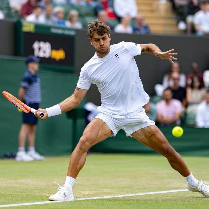 科博利的打法浸润着意大利网球的传统美学,但真正让他跻身顶尖的行列,是经过科学改造的现代武器库:首先是正手暴力美学,他能在移动中轰出接近130公里/小时的inside-out制胜分,本次温网对阵西里奇时,多次在被动防守后凭借正手直线实现攻守转换;其次是发球隐蔽性进化,通过抛球高度与腕部动作的微妙变化,他能在关键分发出时速215公里以上的大外角ace,首盘对阵德约时一发得分率高达78% 。值得注意的是,还有他那足球淬炼的步法,昔日绿茵场上的右后卫经历,赋予他急停急转时惊人的抓地力,草地的滑步救球成为标志性画面。这种技术融合在2025年达到新高度。当他在温网第四轮迎战前赛会亚军西里奇时,全场轰出48记制胜分,尤其第四盘抢七局中连续三个反拍切削压迫对手失误,最终以7-6(3)锁定胜局,职业生涯首进大满贯八强。