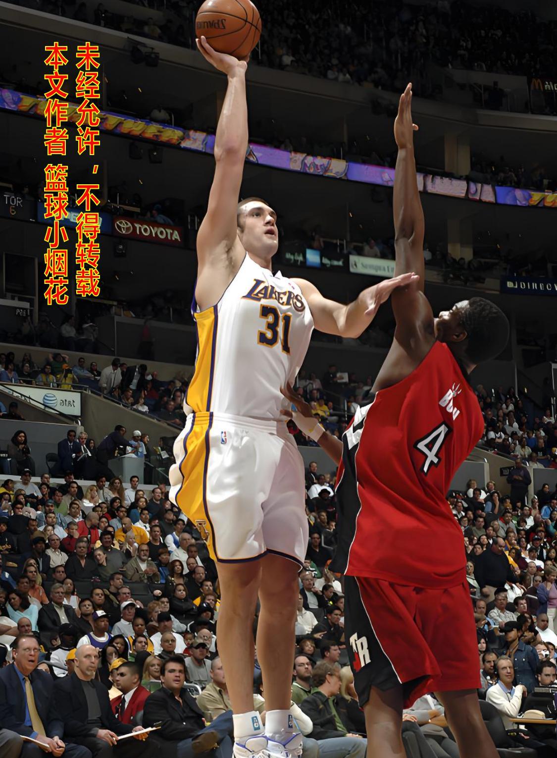 这位小老弟当年刚来湖人的时候,更是魔幻,2004年选秀的时候标榜自己是大号射手,湖人在首轮27顺位拿下之后发现,他喵的豌豆射手!投篮命中率28%!三分球命中率27%!2005年夏天湖人宣布留下豌豆射手的时候,就引得科比非常大的不满,本赛季豌豆射手锤炼一年,有了长足的进步,投篮命中率和三分球命中率都高达34%。=以